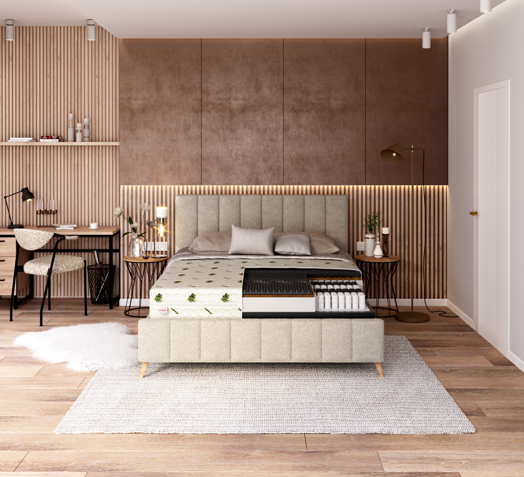 A rugók 7 zónára osztják a matracot, amelyek mindegyike egy adott testrésznek megfelelő alátámasztással rendelkezik. A rugók egymástól függetlenül működnek, hogy két egymás mellett alvó ember ne érezzen kényelmetlenséget a másik mocorgása miatt. A matrac kiválóan alkalmas különböző testsúlyú emberek számára is, mert a matrac nem lejt a másik felé.